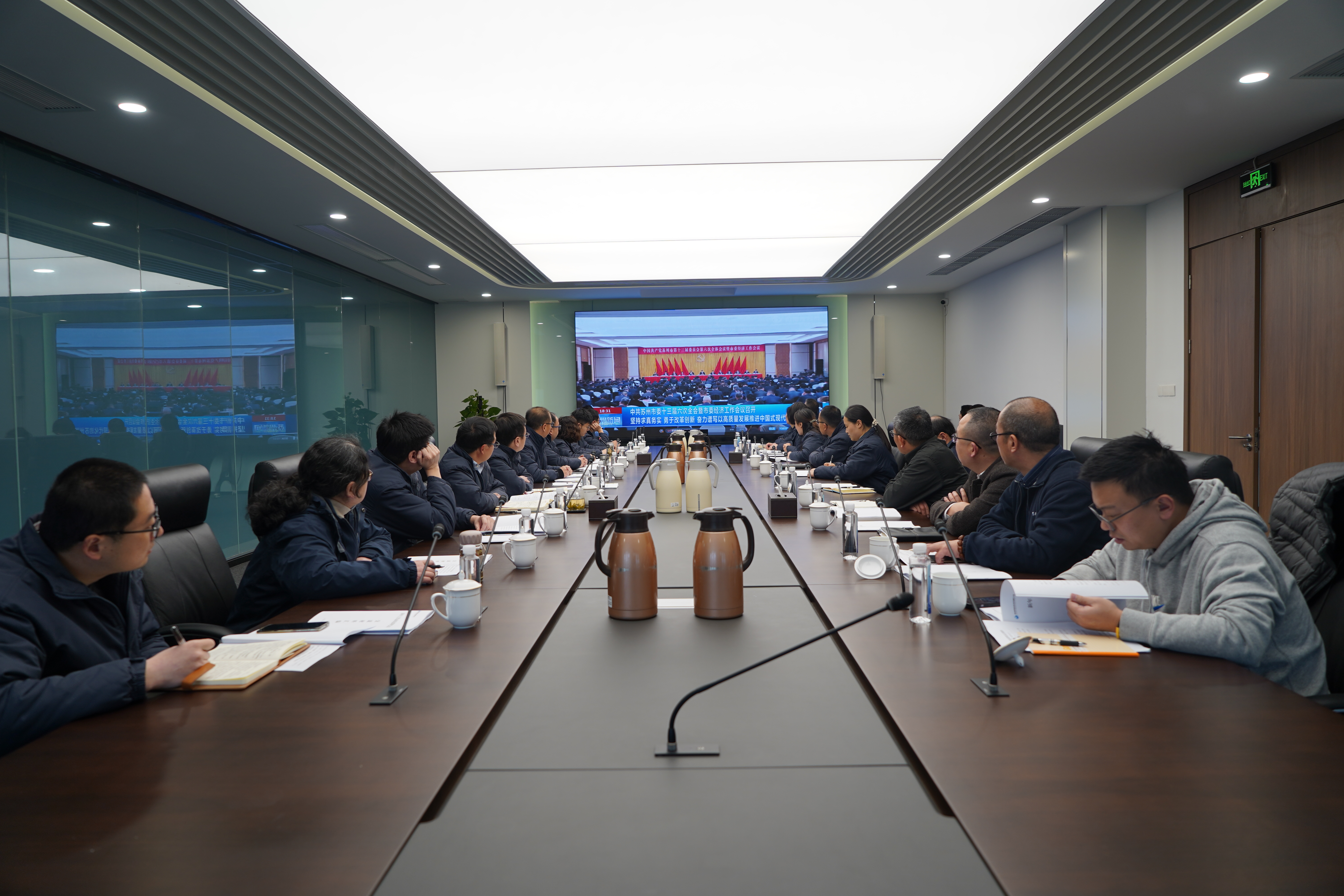 會上,首先根據市委《全市年度基層黨員冬訓工作實施方案》要求,全體成員集中學習蘇州市委十三屆六次全會暨市委經濟工作會議精神,引導廣大基層黨員聚焦經濟建設這一中心工作、把握高質量發展這一首要任務,迅速收心聚力,以奮躍之姿起步沖刺。隨后,各部門負責同志探討交流了2024年重點工作方向,分管領導就分管領域工作進行總體規劃,圍繞“科技賦能、降本增效、保供惠民”重點,就持續完善集中運控模式、推進廠站智能化改造、優化惠民服務質效、打造亮眼企業文化等工作方向集思廣益、群策群力。
