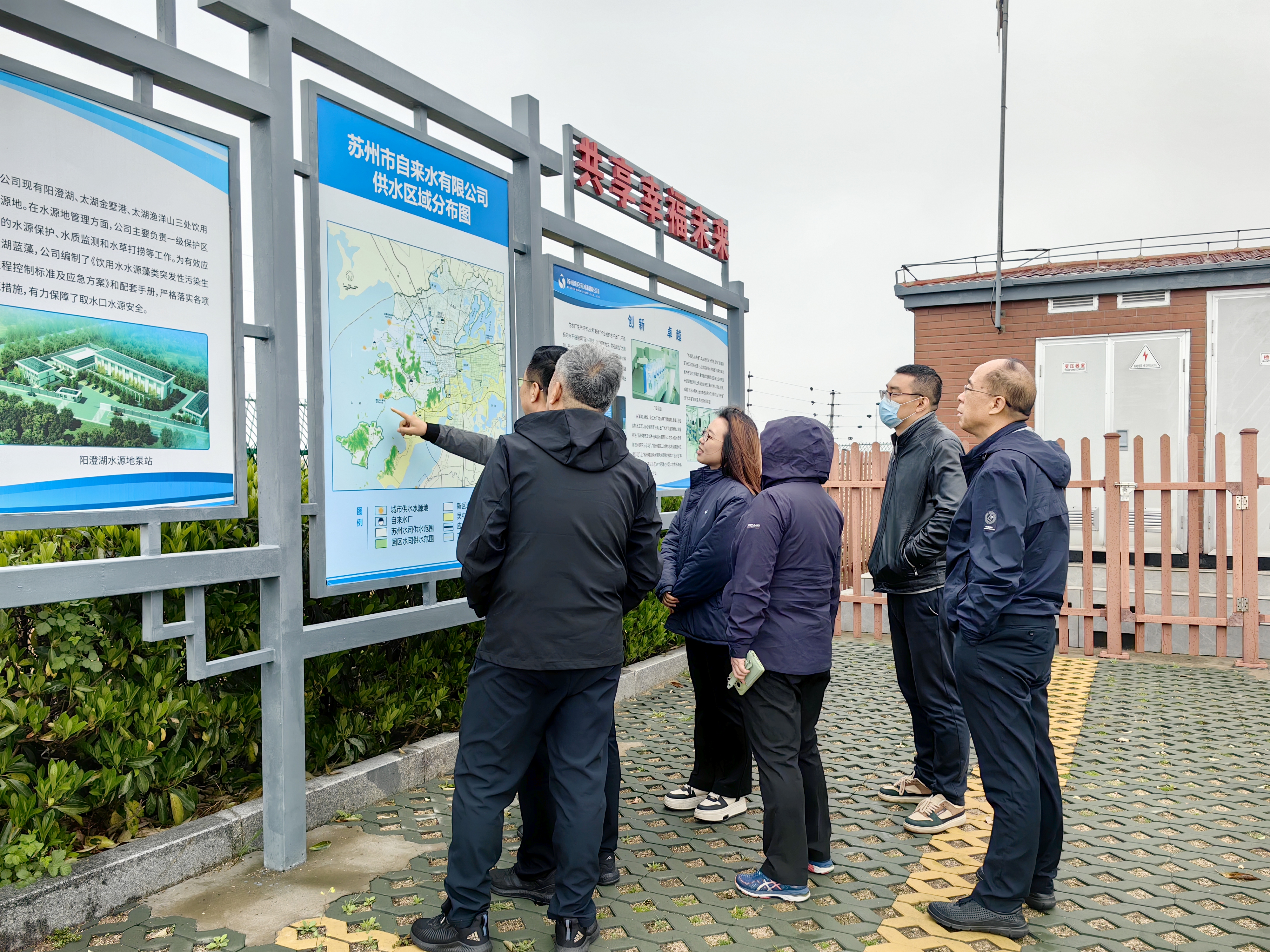 3月28日上午,在江蘇省生態環境廳財審處副處長錢楊、蘇州市高新區太湖辦副主任陳紹鵬的陪同下,伊犁州生態環境局調研組一行赴金墅港水源地考察調研,制水分公司相關負責人員陪同調研。