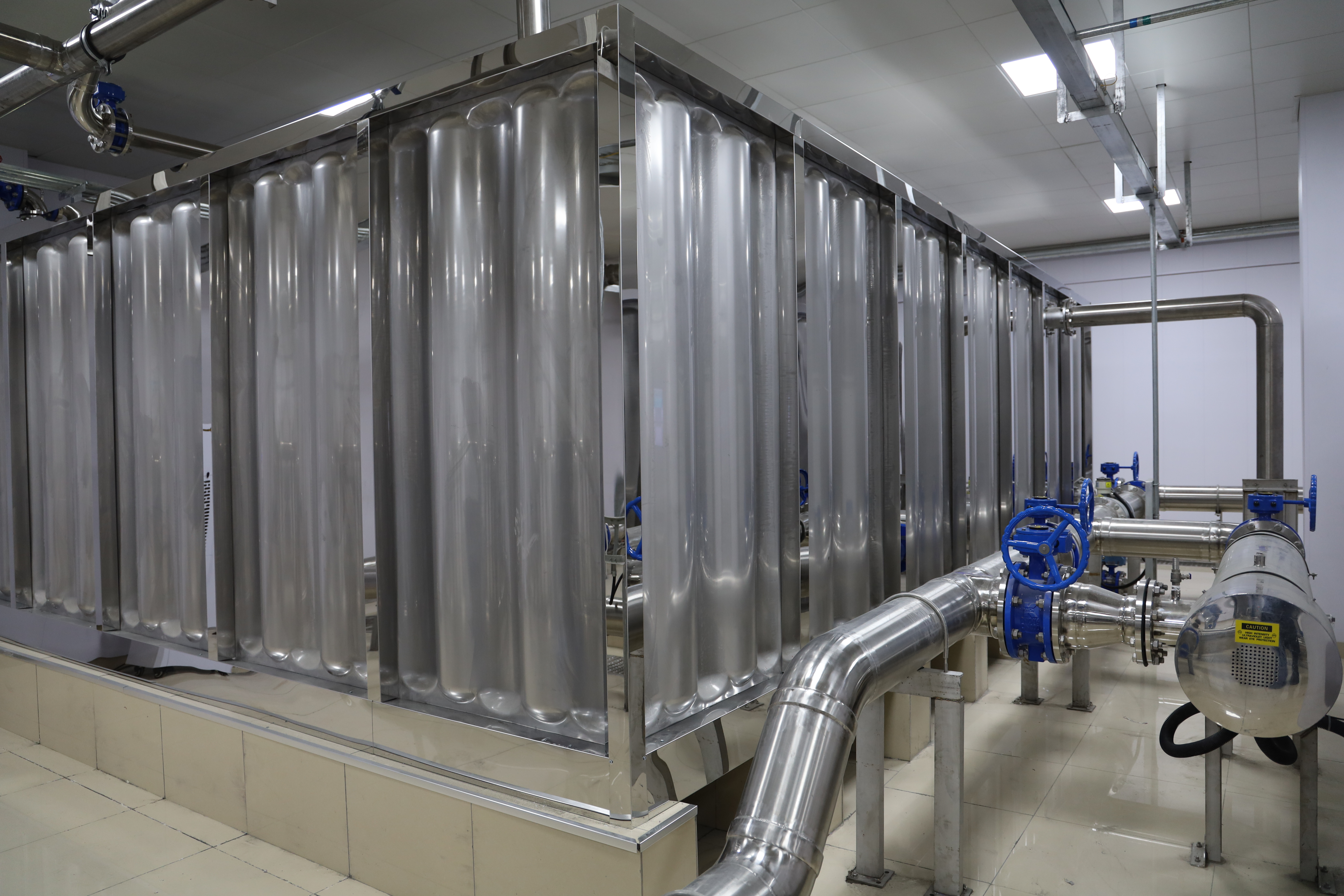 近日,由胥口水司主導新建的悅年華小區二次供水泵房順利通過驗收。該項目在全市范圍內首次使用了雙面弧肋型超剛度SW新型智能自清洗水箱,剛度較傳統水箱提高三倍以上,且內部無橫向拉筋、無焊接、無橫縫,具備無積水、無死角、耐腐蝕、能自動清洗、安全風險低等優點,可進一步改善“最后一公里”供水水質。