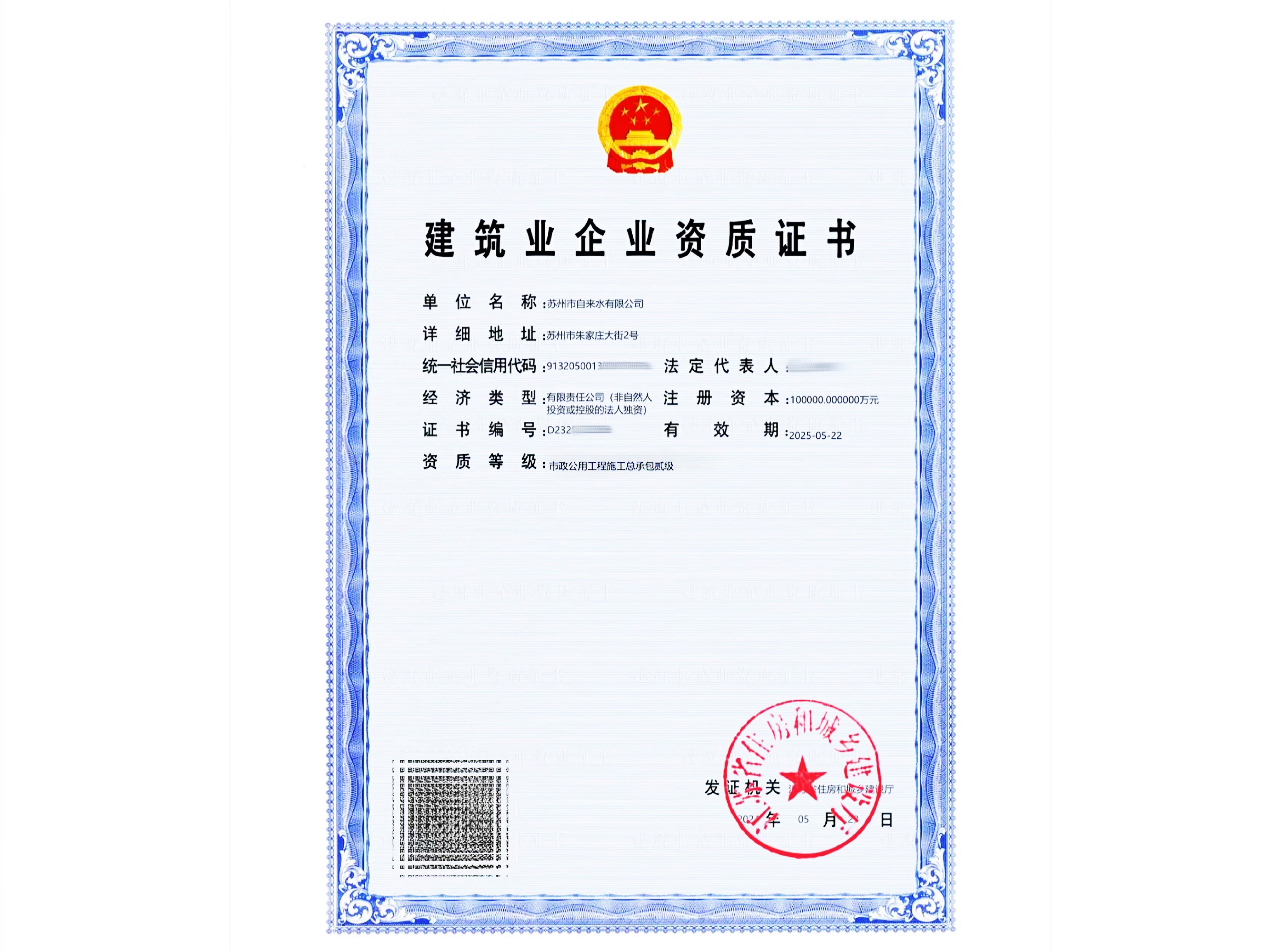 近日,公司完成建設工程企業(yè)資質證書換領工作,經(jīng)資質主管部門核準,成功取得市政公用工程施工總承包貳級資質。
