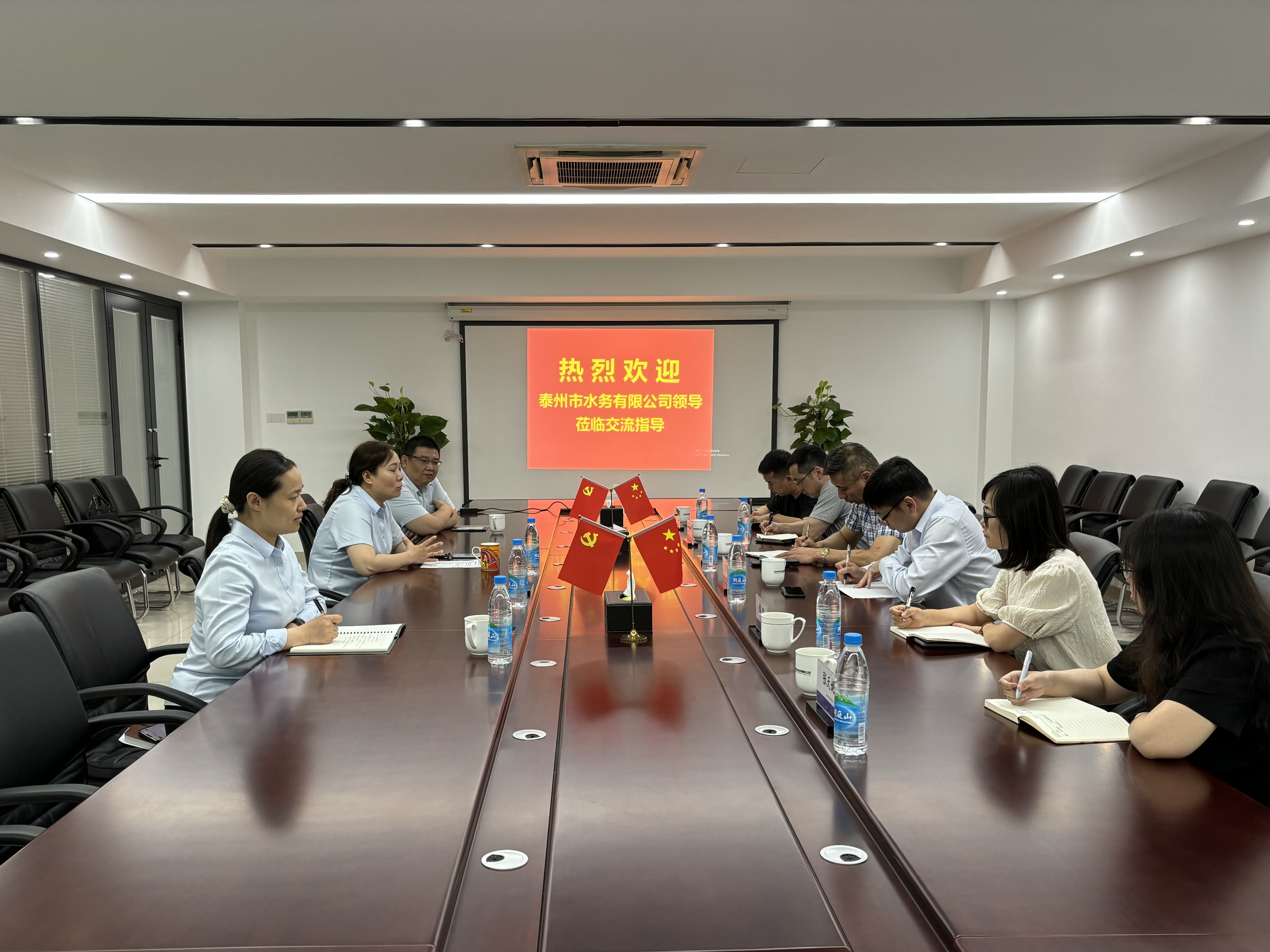 6月18日,泰州市水務有限公司一行赴市自來水公司供水分公司調研交流,公司總經理助理、供水分公司經理劉菁及相關部門負責人陪同交流。