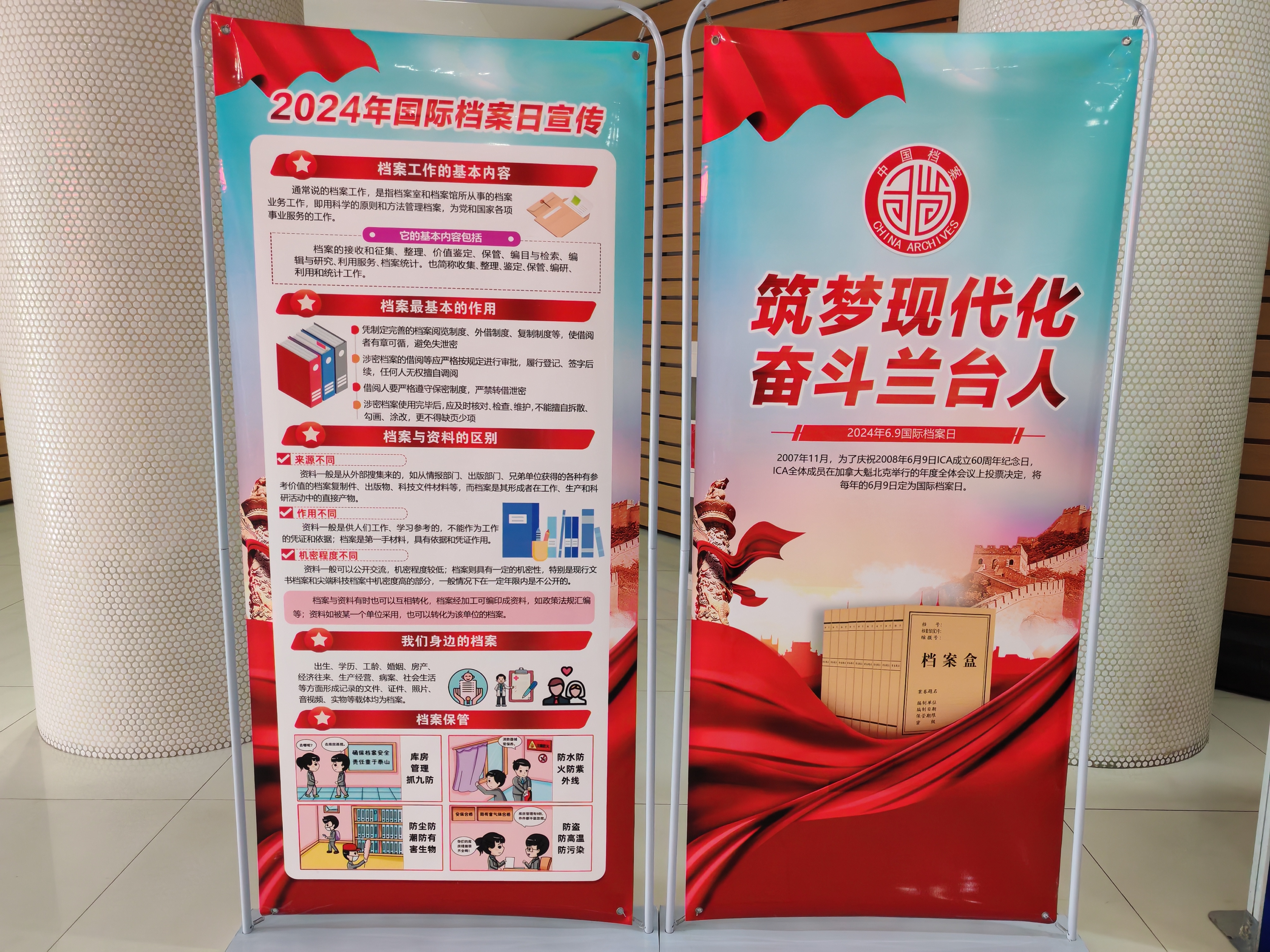 近期,公司圍繞第十七個“國際檔案日”,以“筑夢現代化·奮斗蘭臺人”為主題組織開展國際檔案日系列宣傳活動,進一步普及檔案知識,傳播檔案文化。