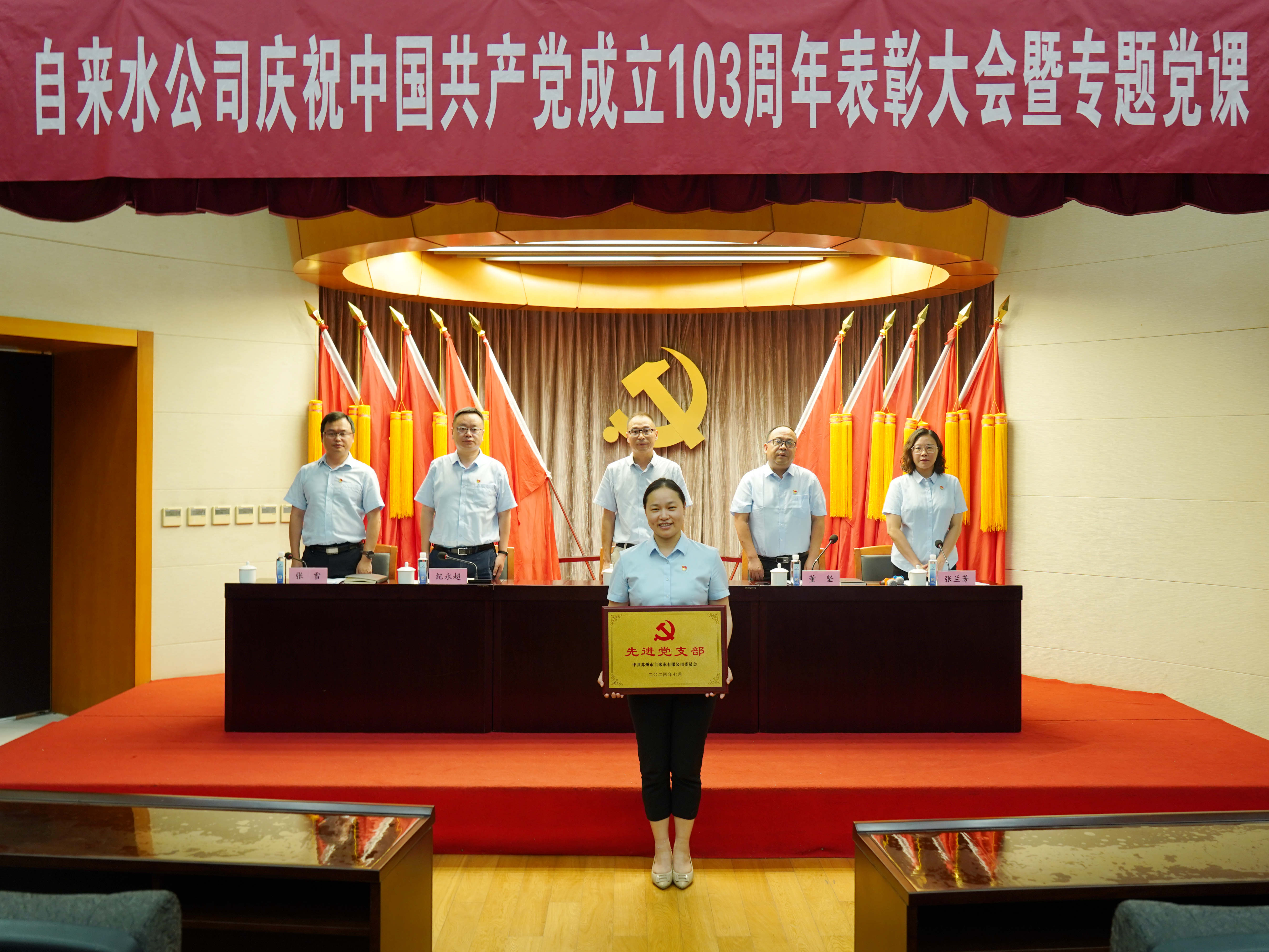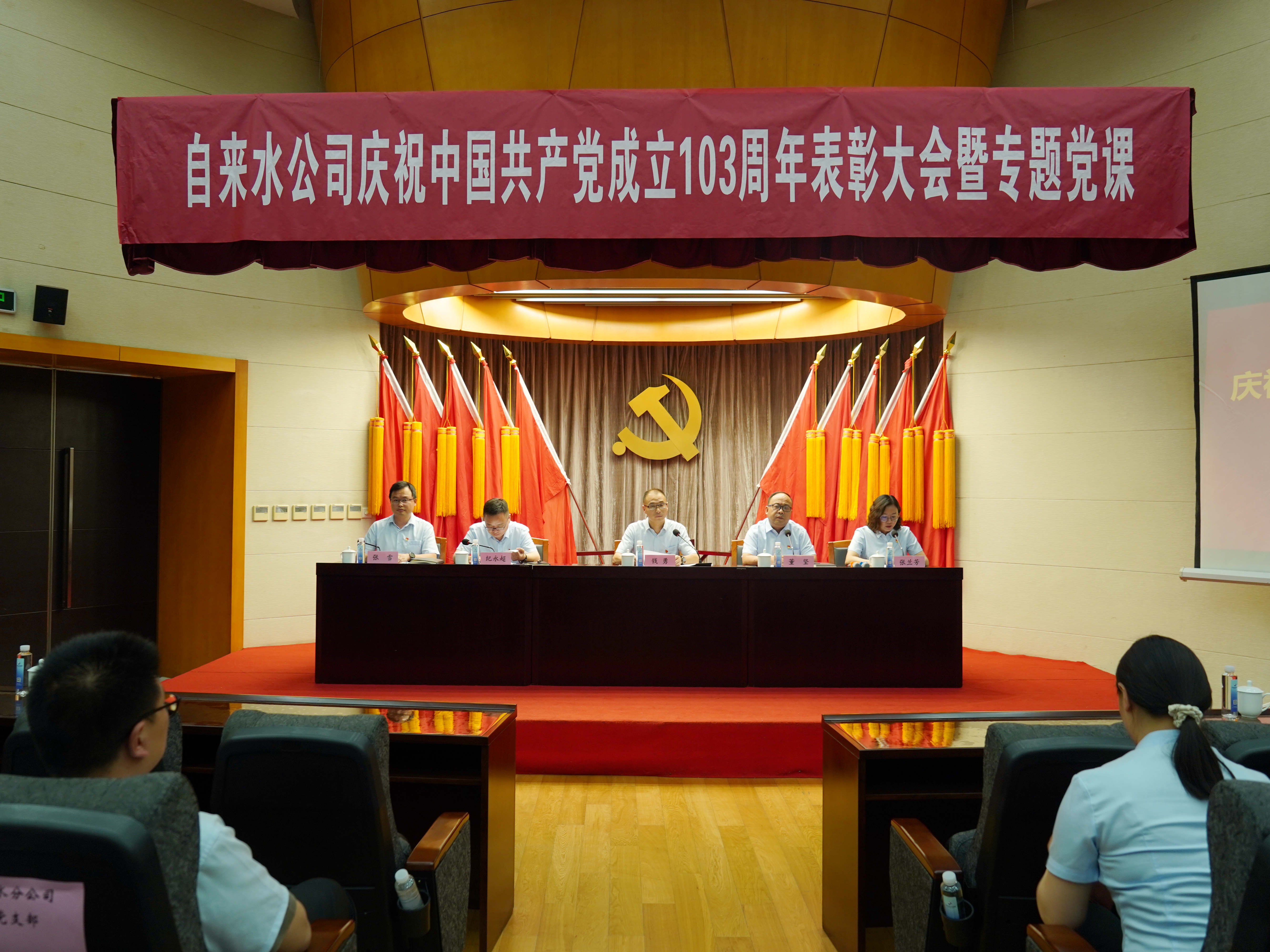 7月5日下午,市自來水公司召開慶祝建黨103周年表彰大會暨專題黨課培訓(xùn),公司領(lǐng)導(dǎo)班子成員、中層干部、全體黨員、受表彰人員等120余人參加大會。公司黨委委員、紀委書記、工會主席張?zhí)m芳主持會議。