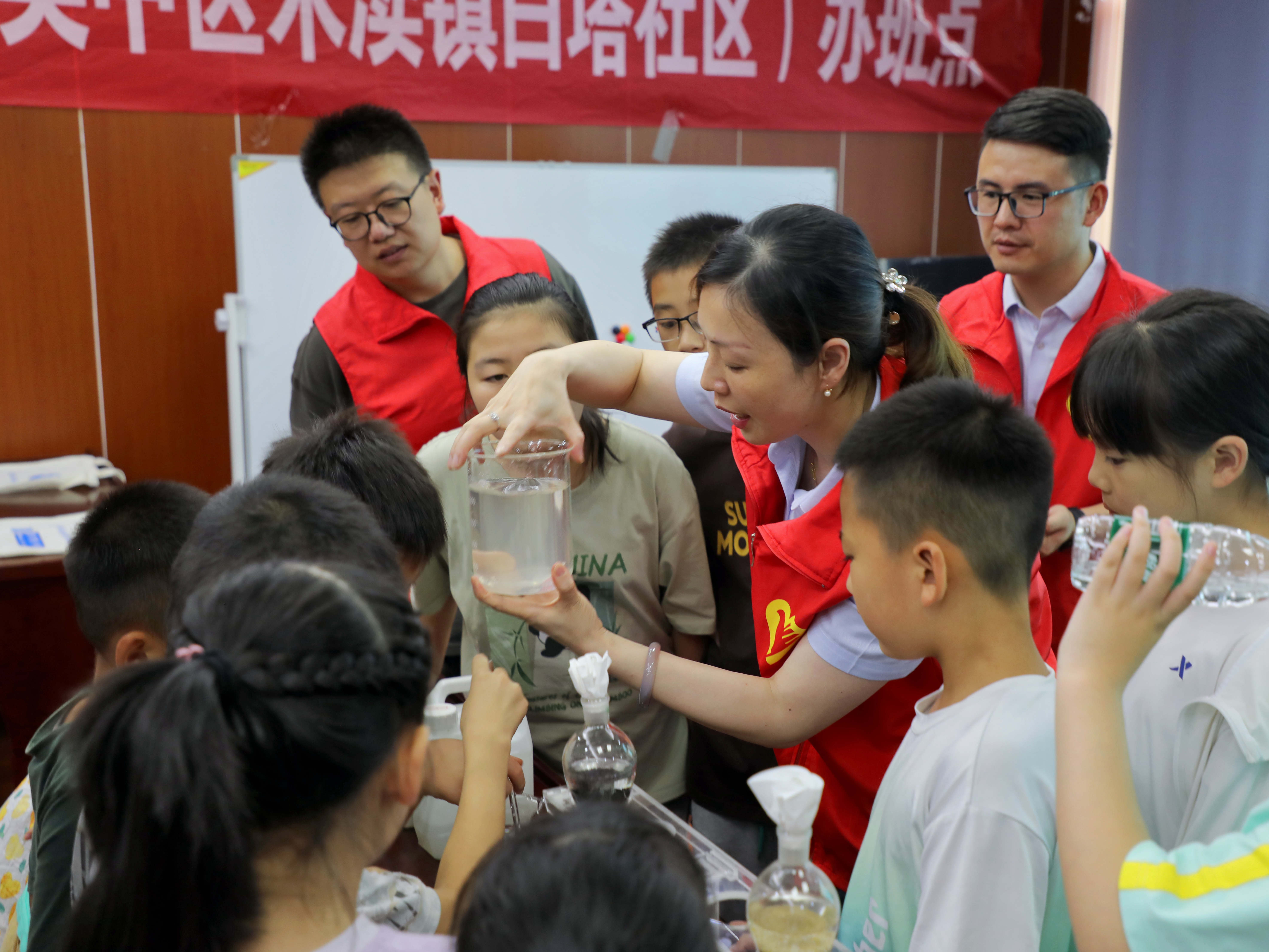 “水真的變清澈啦,好神奇呀!”社區的青少年活動中心里,孩子們目不轉睛地盯著實驗器具,發出一聲聲感嘆。