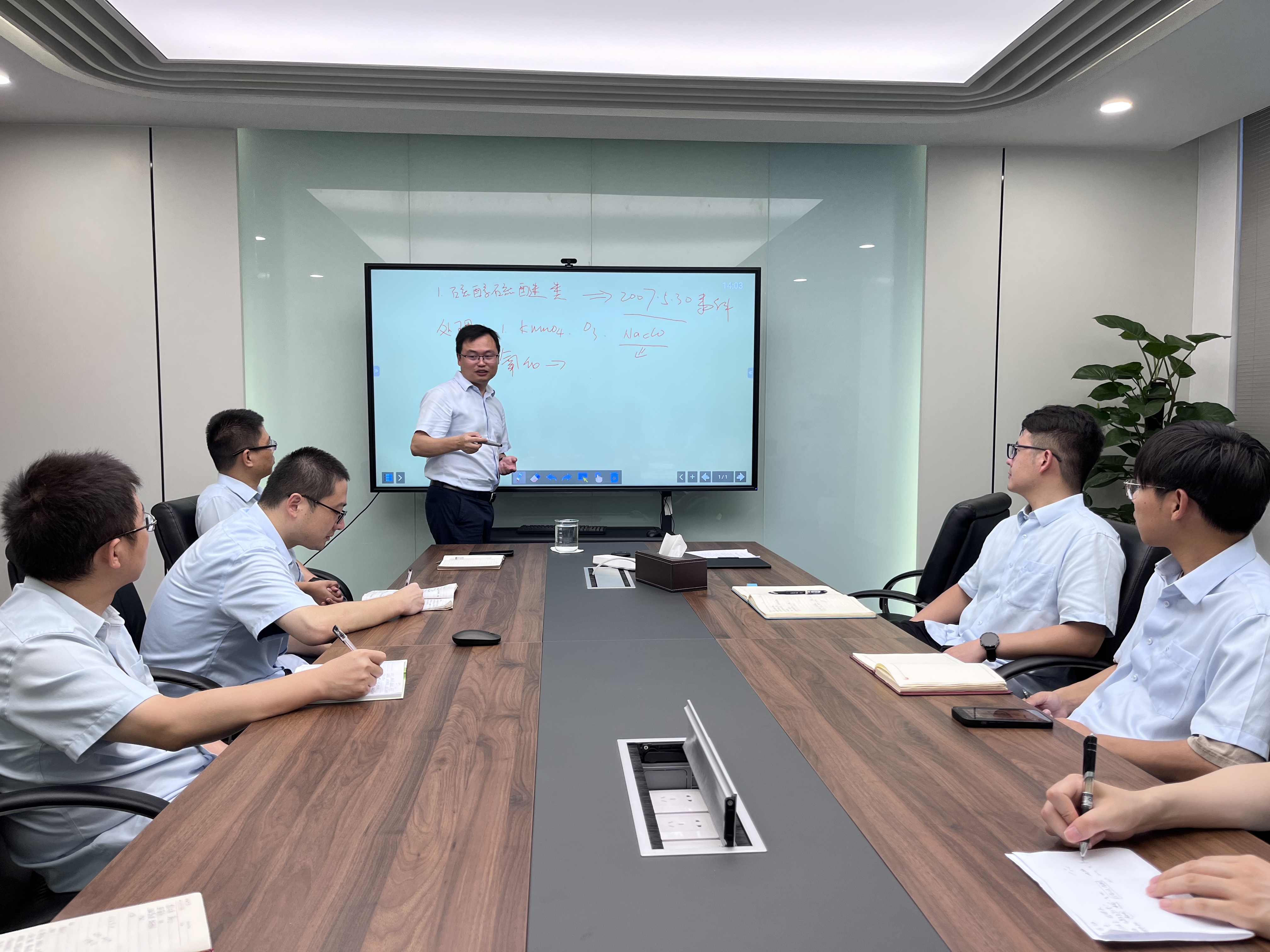并網恢復當天,公司組織技術人員召開研討會議,針對本次演練各階段的情況變化和工藝操作進行了全面復盤,研討解決演練中出現的技術難題,并根據演練情況同步修訂了《藍藻防控專項應急預案》。