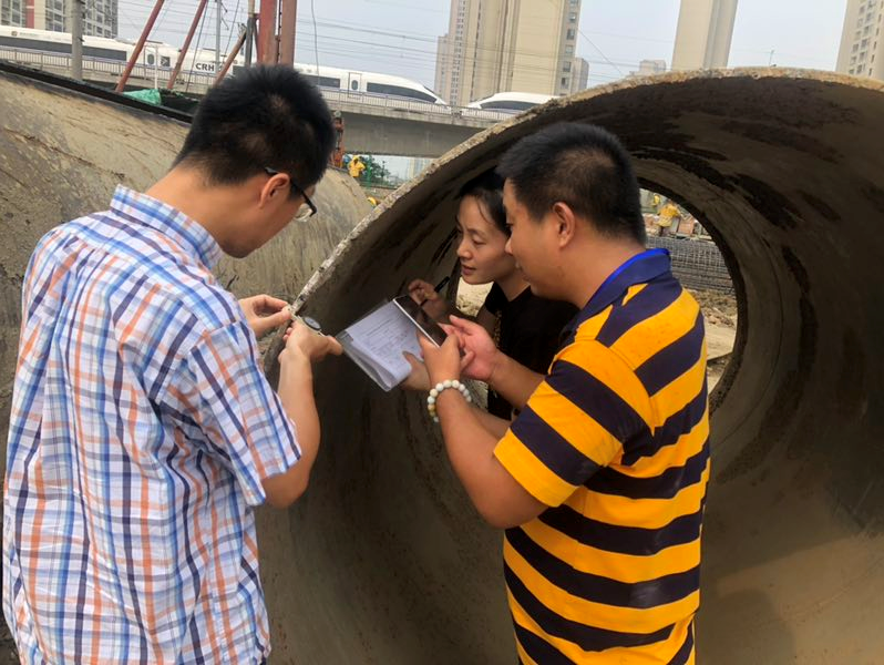 近日,公司合約處聯合紀檢監察室、供水管網所對虎林路DN1800管道回收工程進行了現場勘察測量。