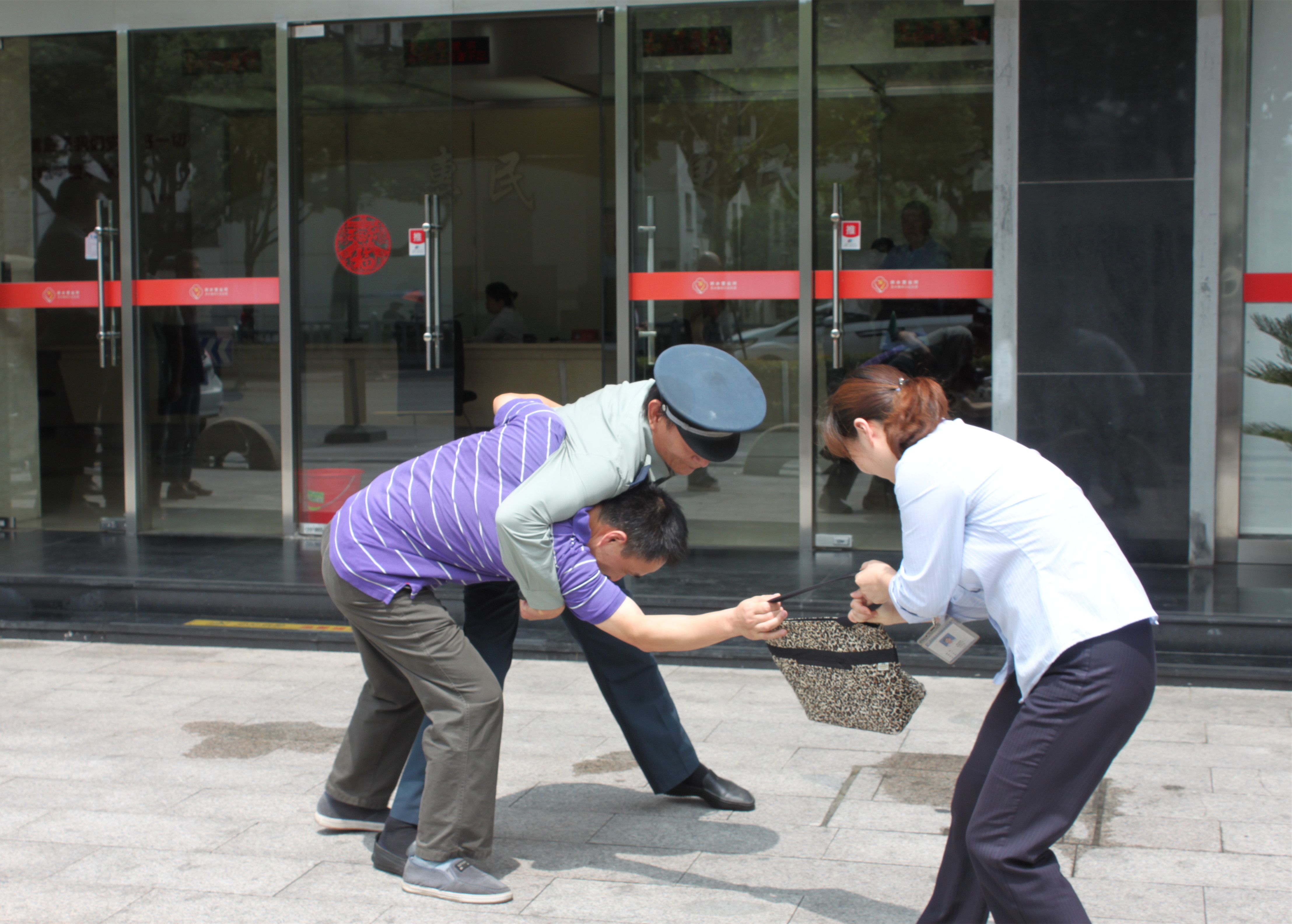 本次演練包含三項主要內容:人身威脅應對、室外搶劫應對以及消防設施操作培訓。首先模擬柜臺人員遭受人身威脅時的場景,職工按下報警按鈕,在接到報警3分鐘內,同泰安保公司安保人員及時到達現場支援,將歹徒制服并帶離現場;其次模擬了柜員在保安陪同下攜帶現金前往銀行解款,路遇歹徒搶包的情景,保安及時制止歹徒行為,并保護了柜員的安全。最后,應急管理局相關工作人員來到現場,進行消防設施現場培訓,講解器材操作規范。