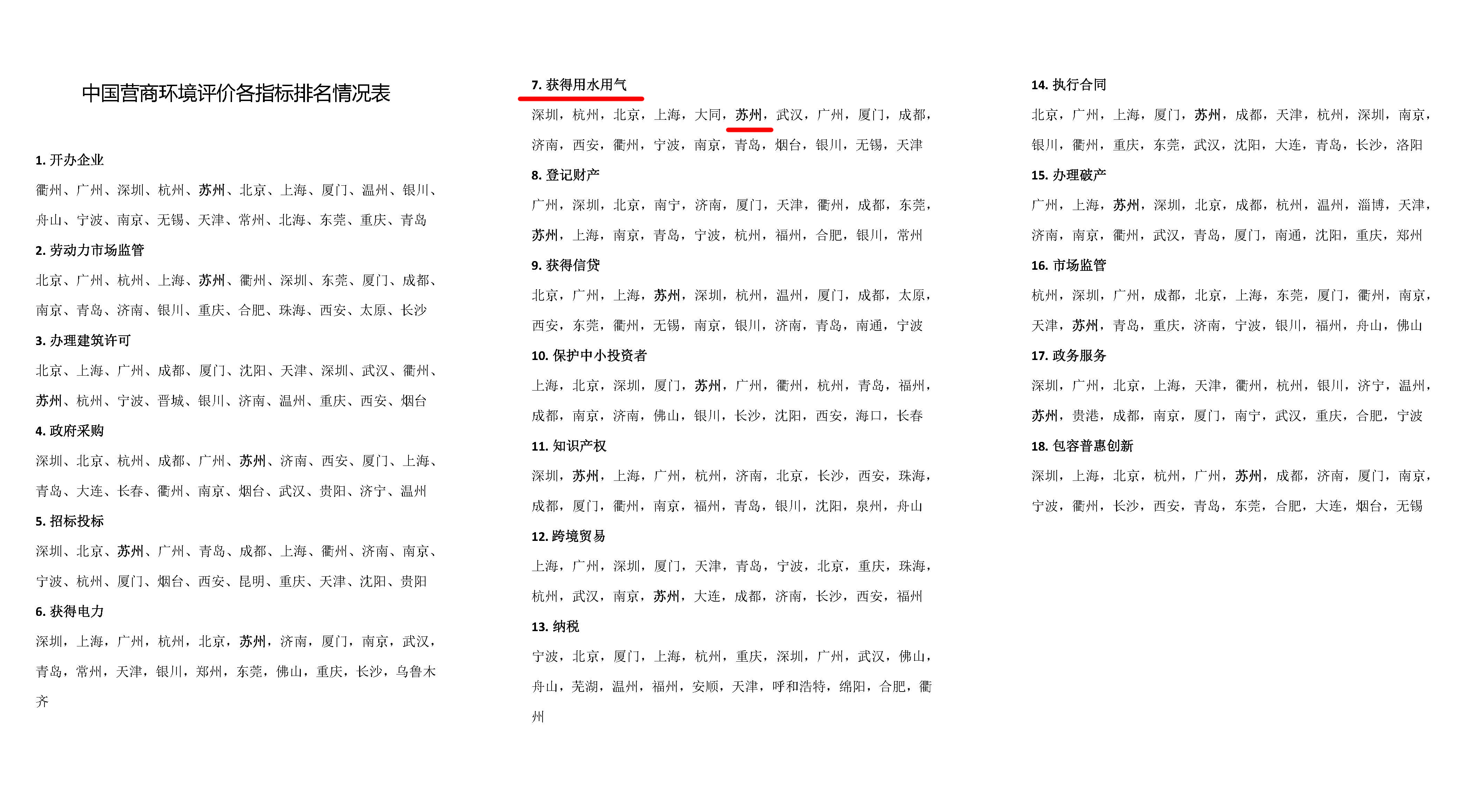 國家發改委近期發布了“2020年中國營商環境評價”結果,蘇州“獲得用水用氣”指標在全國98個參評城市(國家新區)中排名第六,這是市自來水公司第一次代表蘇州大市供水企業參加測評,也是江蘇省在該參評指標中的最佳成績。