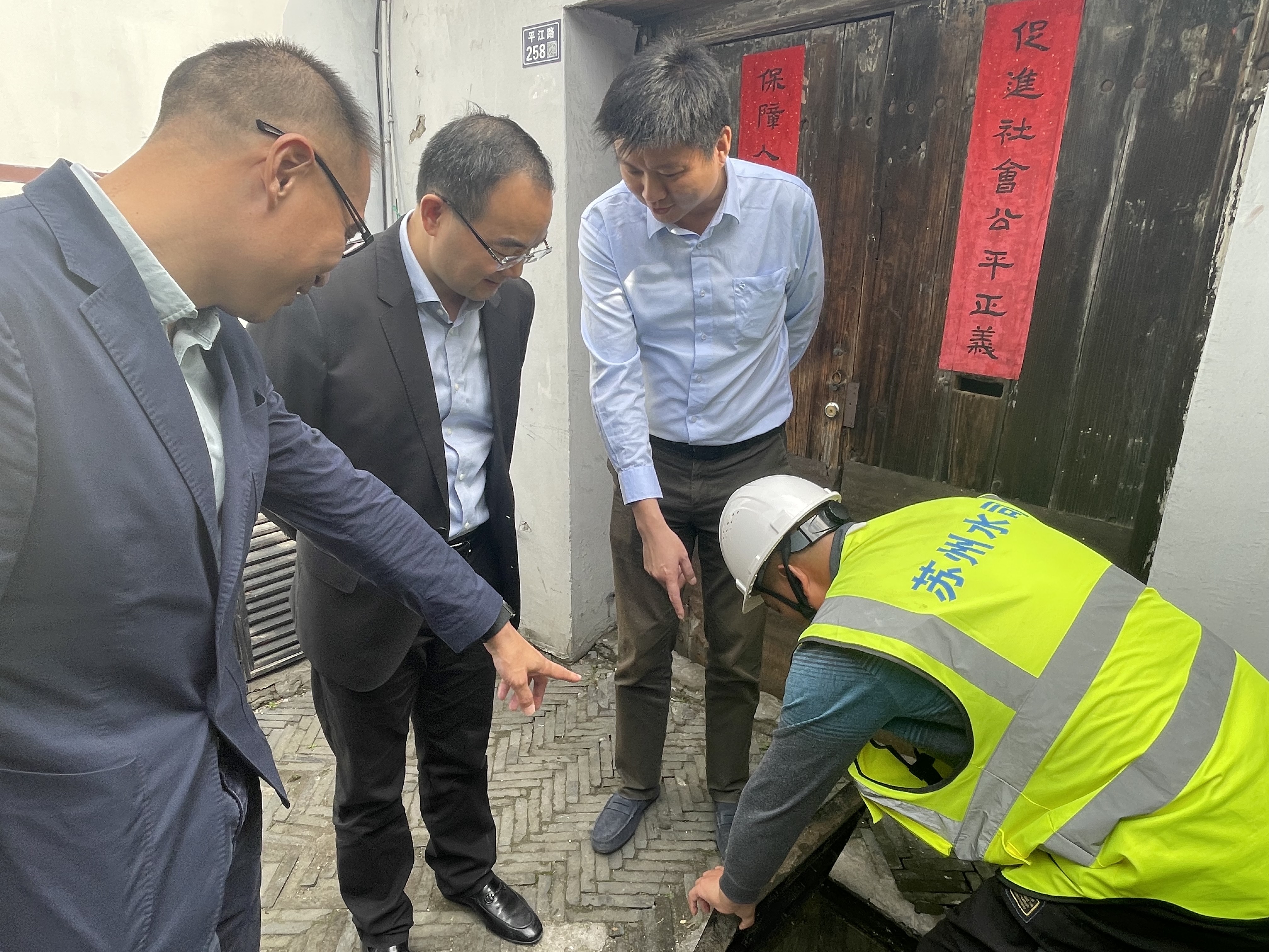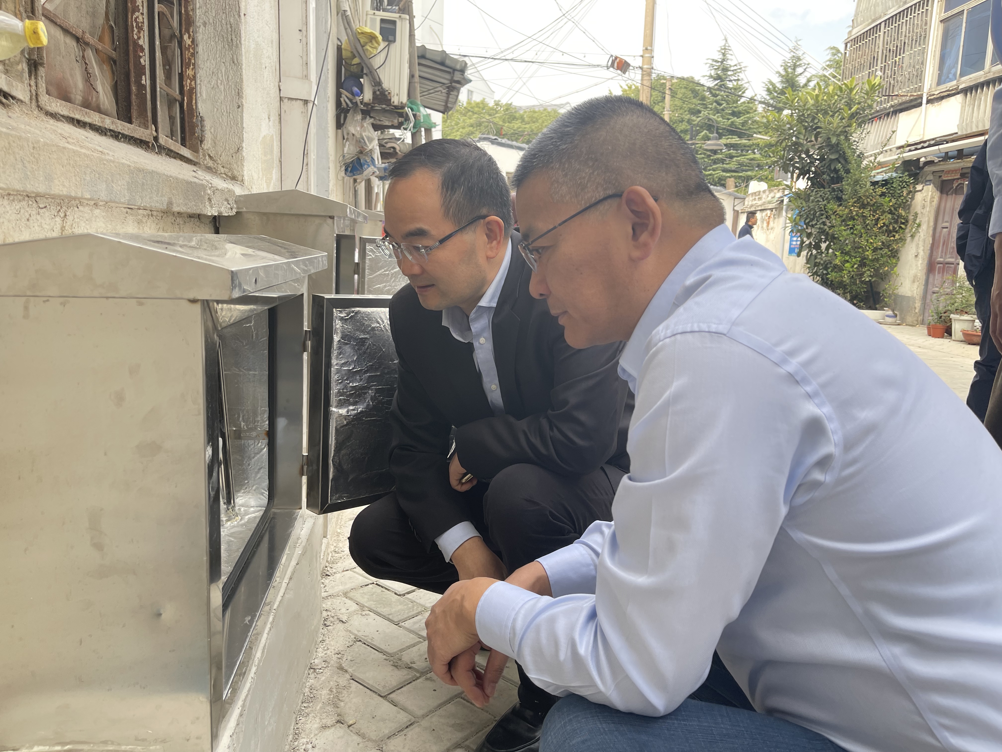 徐董一行先后走訪了新元二村、冰廠街和平江歷史街區(qū),重點(diǎn)考察了高品質(zhì)供水管道改造和水表智能化升級(jí)工作落實(shí)情況。新元二村和冰廠街高品質(zhì)供水改造自今年8月正式開工,已順利完成小區(qū)地埋進(jìn)戶管和不銹鋼立管的改造,并同步推進(jìn)水管防凍保溫材料的包扎,居民到戶水質(zhì)得到進(jìn)一步提升。