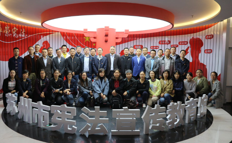 蘇州市憲法宣傳教育館以蘇州的人文與歷史為背景,以蘇州人的視角展現了憲法誕生的國家記憶。跟隨現場講解員,全體人員依次參觀了序廳、國家記憶?憲法誕生、憲法就在身邊和美好生活?法治信仰等四個展廳。通過圖解、功能區域、多媒體設施、趣味游戲、互動小課程多樣化形式,帶我們回顧了蘇州近四十年發展中展現的憲法精神和實踐,集中反映了法治蘇州建設的實踐成果。