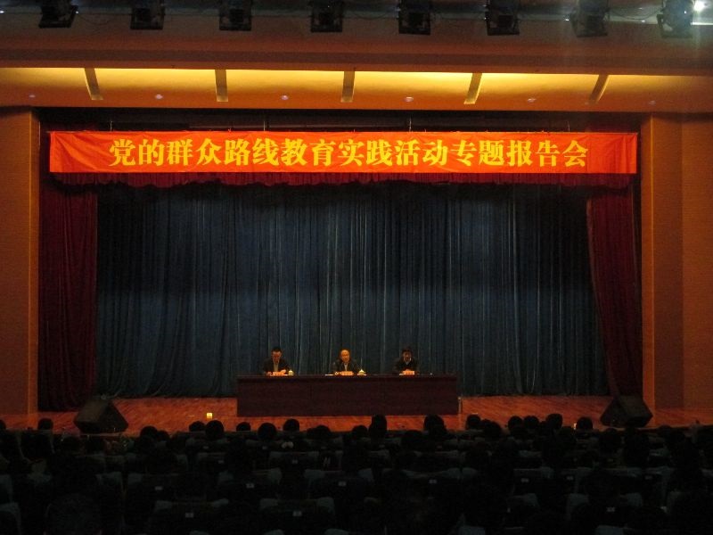 3月28日下午,公司黨員干部參加了黨的群眾路線教育實踐活動專題報告會。會議邀請市委副書記陳振一作輔導報告,市水利局黨委書記、局長戴錦明主持報告會,水務集團黨委書記、董事長管偉民參加會議。